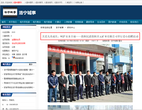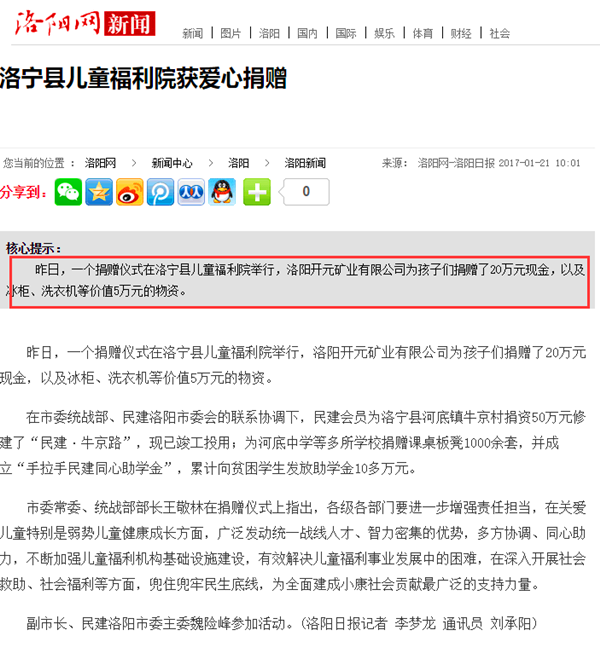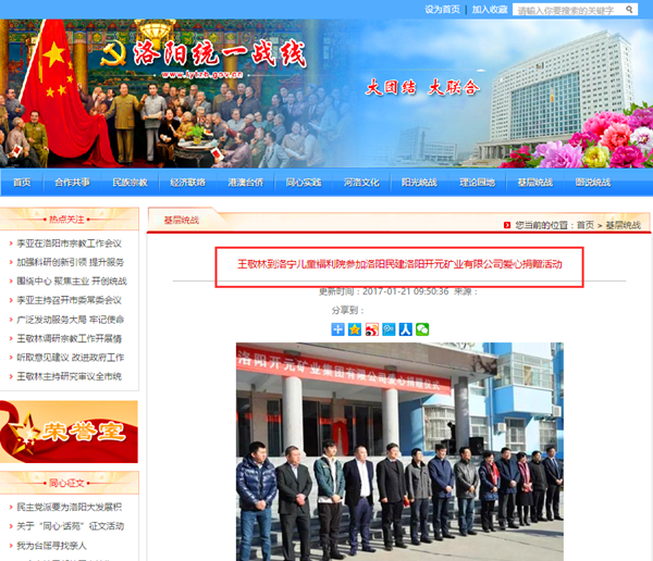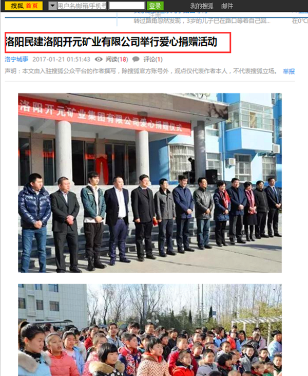 弘揚(yáng)社會(huì)正能量 愛心事業(yè)美名揚(yáng)——洛陽開元礦業(yè)集團(tuán)善舉引起國(guó)內(nèi)各大媒體高度關(guān)注